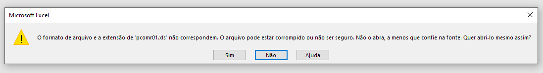 Após renomear o mesmo, pode copiar para sua área de trabalho, ao abrir a mensagem abaixo sera apresentada, pode clicar em “SIM”