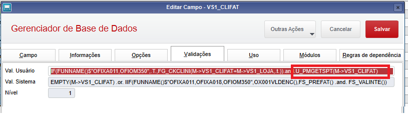 Foi inserida a função na validação do campo e pode ser habilita/desabilitada através do parâmetro acima